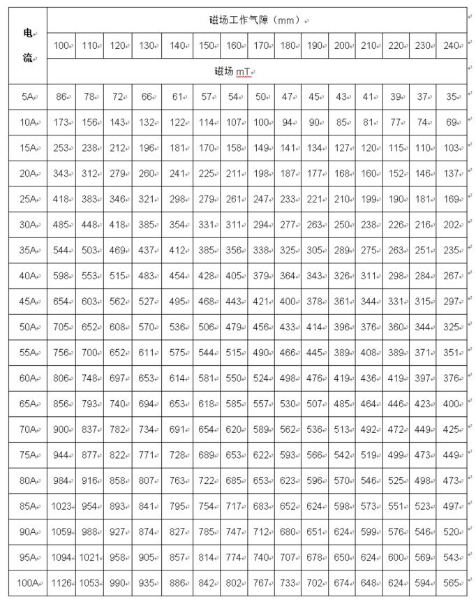 4.0、磁場參數(shù)表